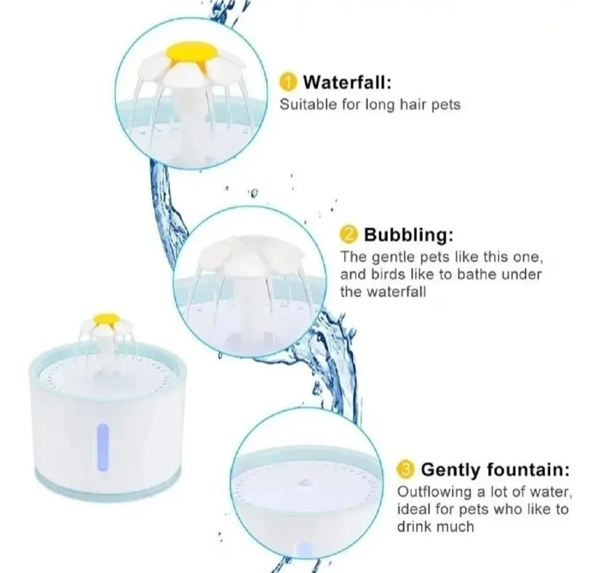 Promueve la Salud y el Bienestar, la hidratación adecuada es clave para mantener a tu mascota saludable. Nuestro bebedero ayuda a prevenir problemas urinarios y de salud relacionados con la deshidratación.